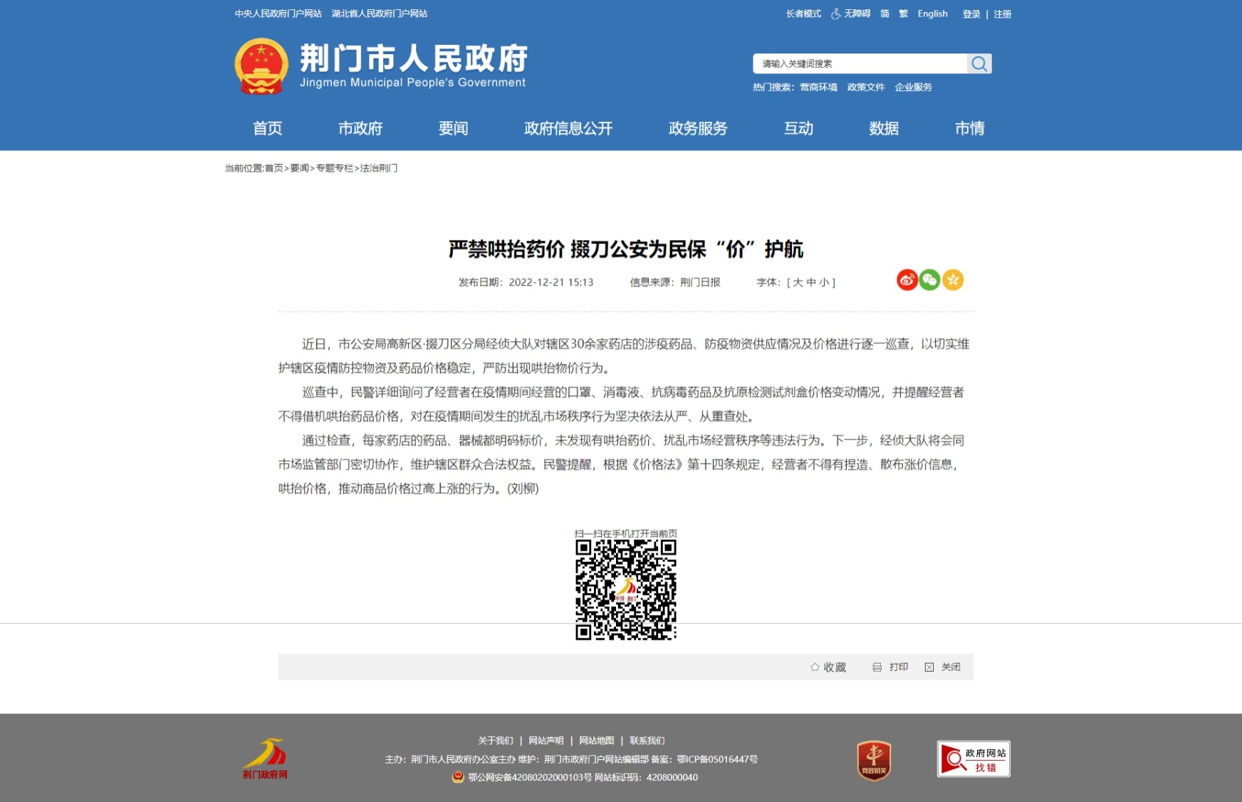 严禁哄抬药价 掇刀公安为民保“价”护航
